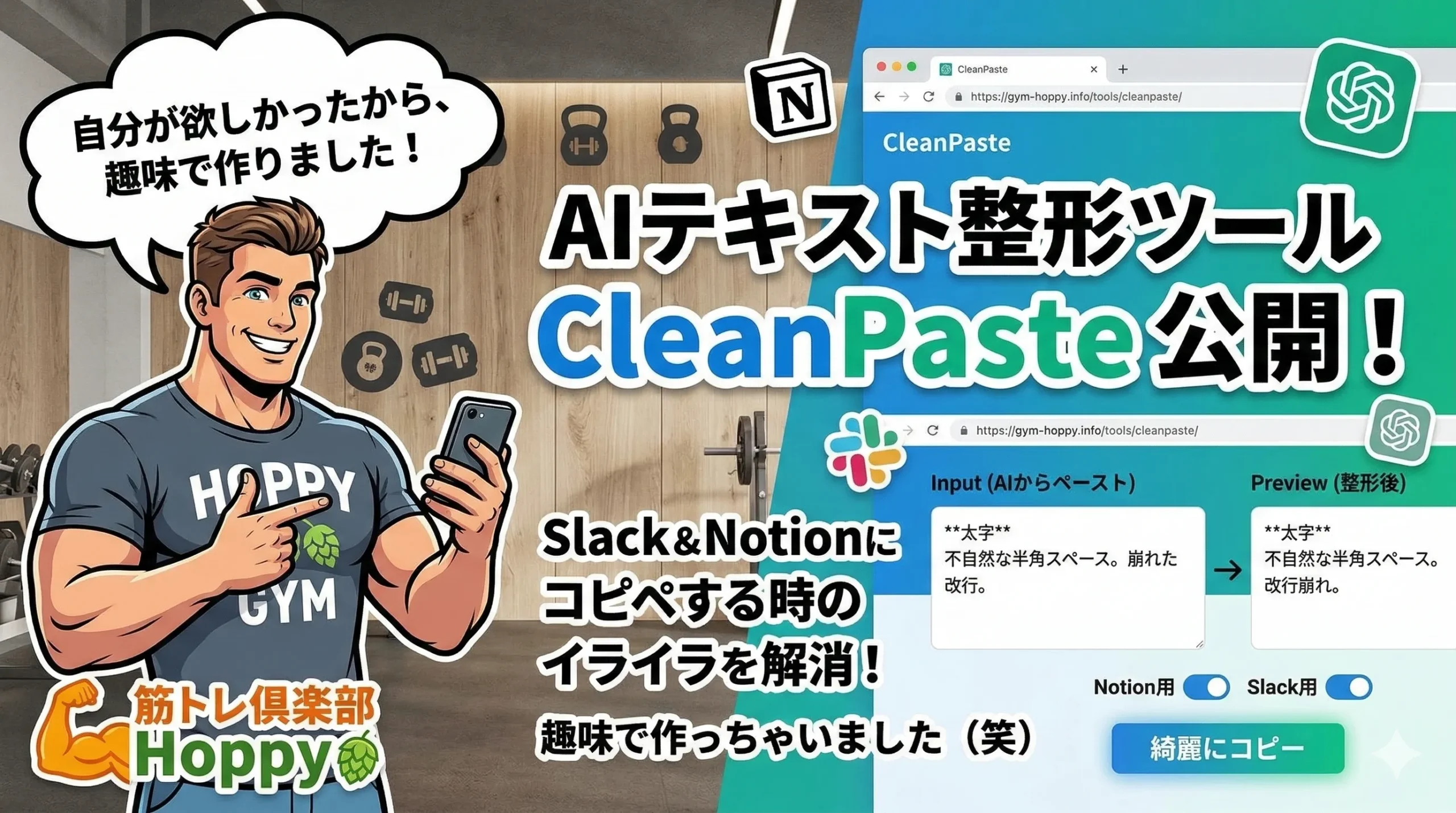 ▼AIテキスト整形ツール – CleanPaste https://gym-hoppy.info/tools/cleanpaste/